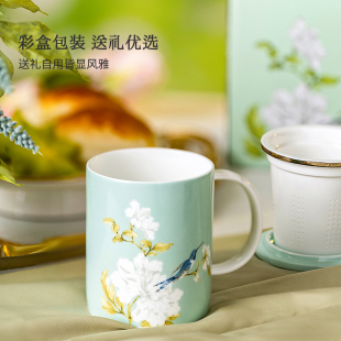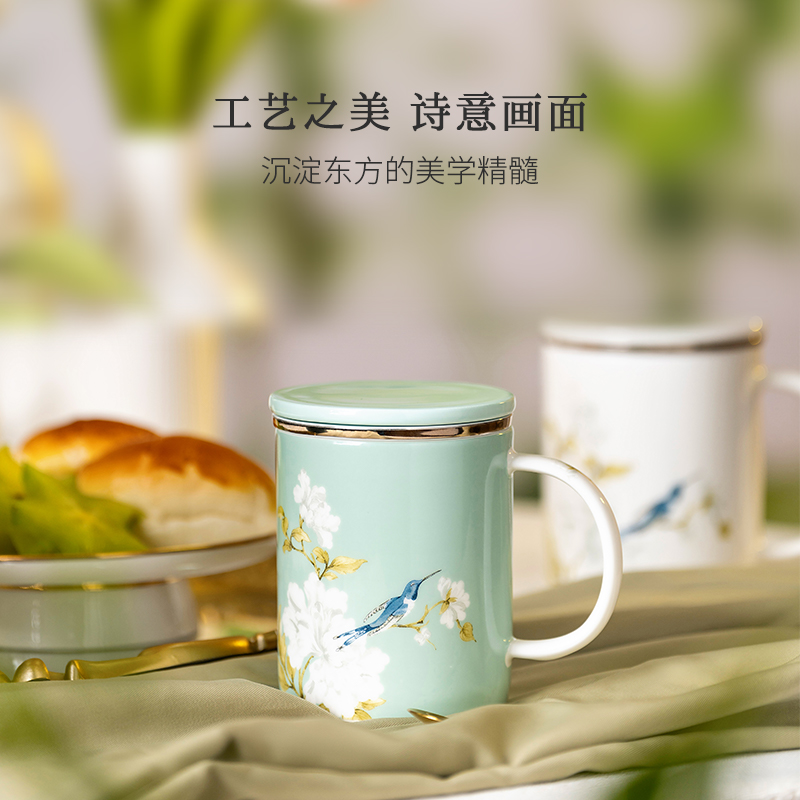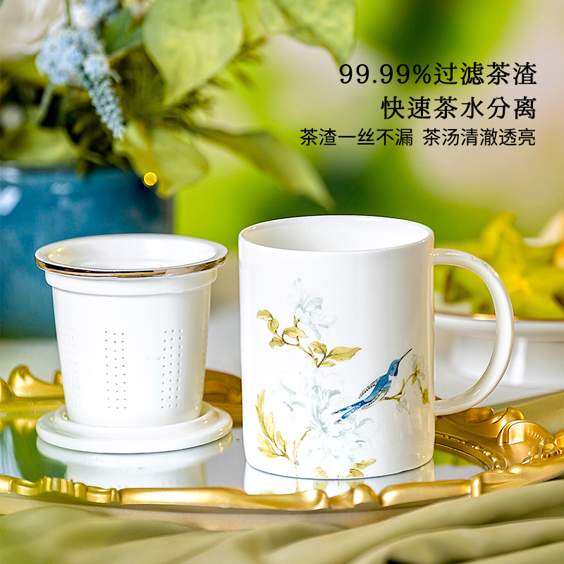 万仟堂2025新款 举个栗子 办公陶瓷茶水分离泡茶杯带盖家用茶具套装