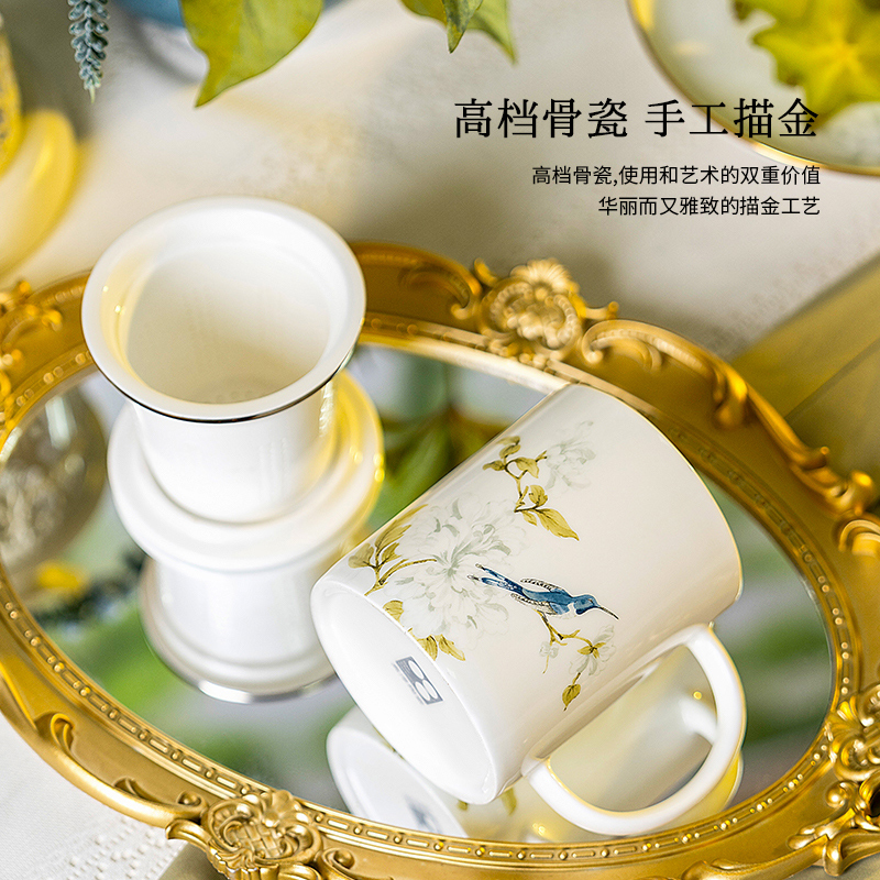言仓线条小狗泡茶分离杯带滤托陶瓷水杯办公室茶杯生日礼物