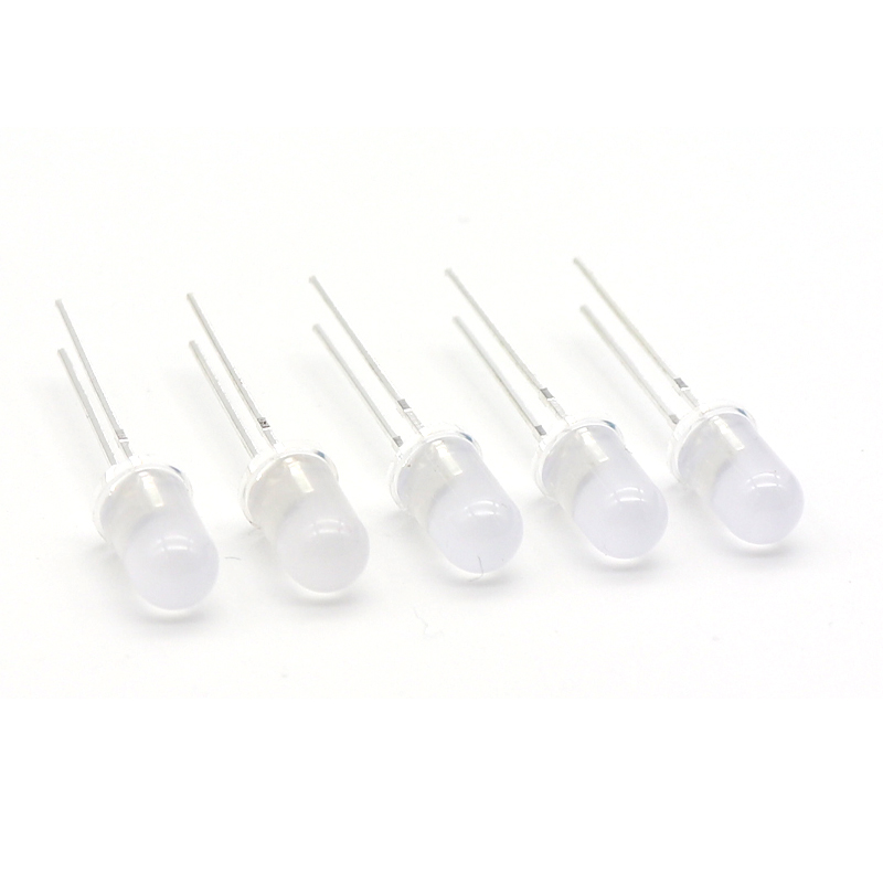 F5雾状圆头白发白红黄蓝绿黄暖LED灯珠5MM高亮直插短脚发光二极管