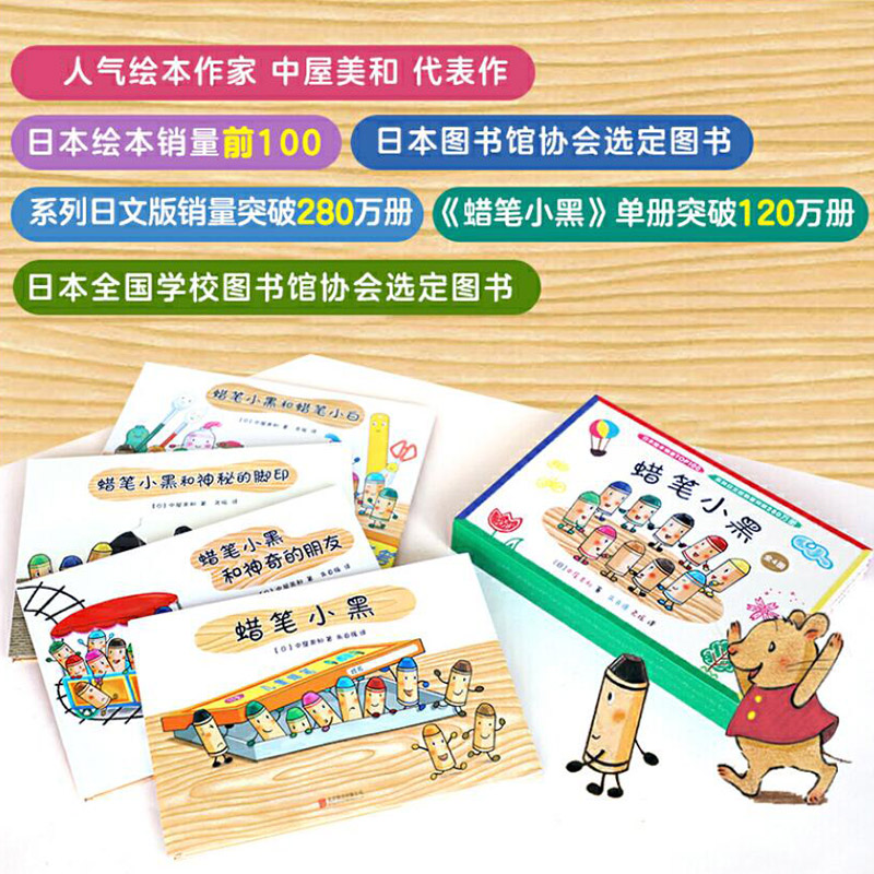 蜡笔小黑全4册精装 童书 蜡笔小黑和神奇朋友神秘脚印和蜡笔小白等自信融入集体生活绘本适合3岁以上爱心树正版