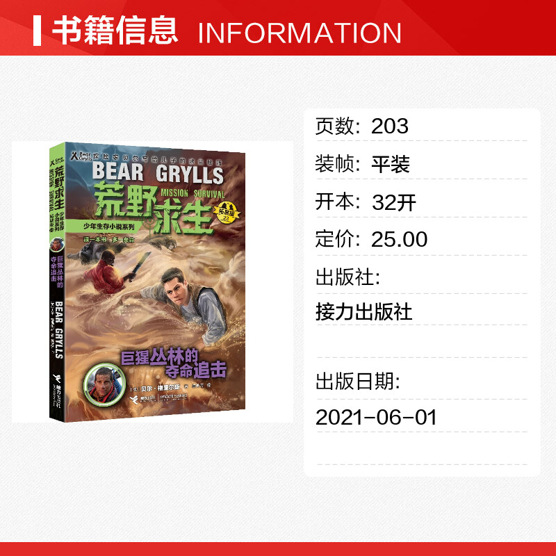 荒野求生少年生存小说贝尔格里尔斯荒岛求生灾难求生野外探险书籍三四五六年级青少年冒险读物畅销 夺命追击 第23册 巨猩丛林