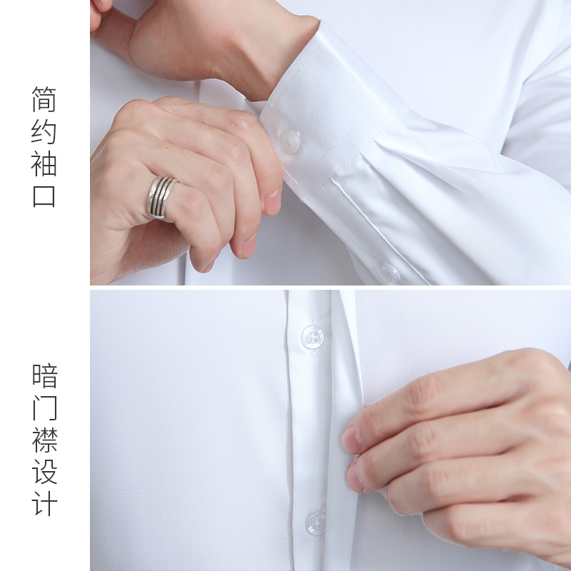 高级感商务休闲白色衬衣职业正装 2025秋季 黑色 男长袖 丝光免烫衬衫