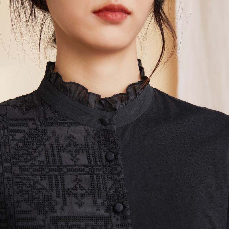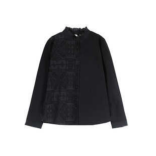 纯棉拼接蕾丝宽松衬衣女长袖 女新款 18345616 佐丹奴白衬衫 设计师款