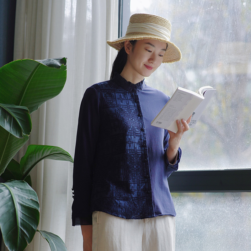 衬衫 蓝色白衬衣法式 女小衫 新款 气质高级上衣 2025秋装 秋水伊人长袖
