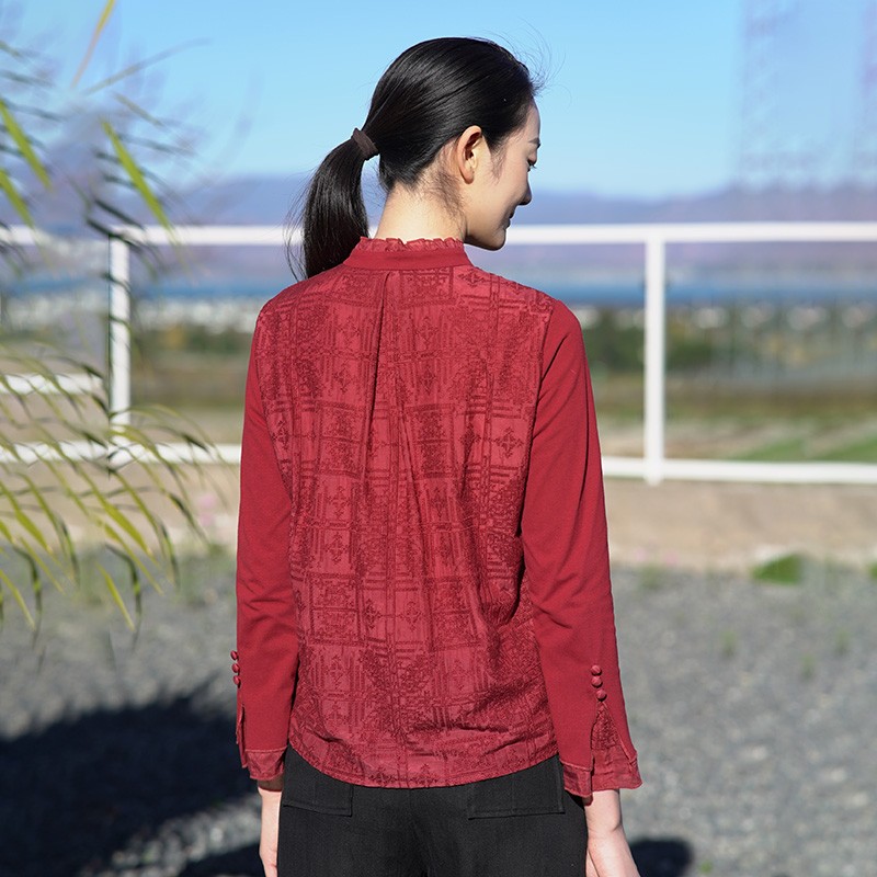 商场同款 红色外套春2025新款 森马长袖 女中长款 格纹上衣复古 衬衫