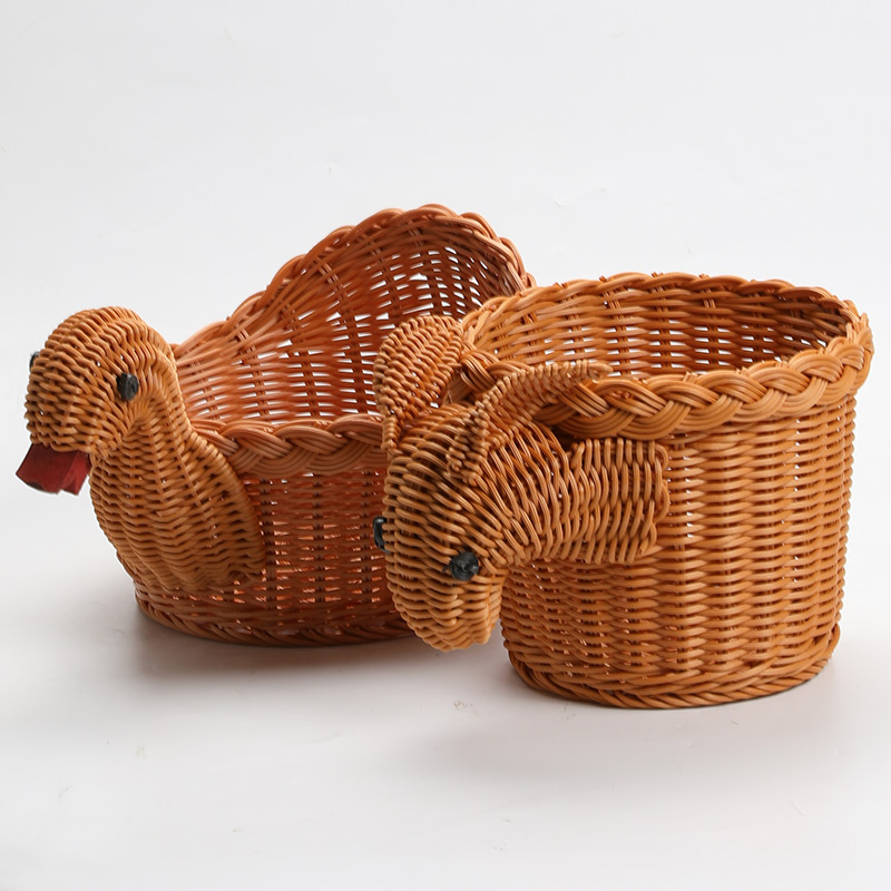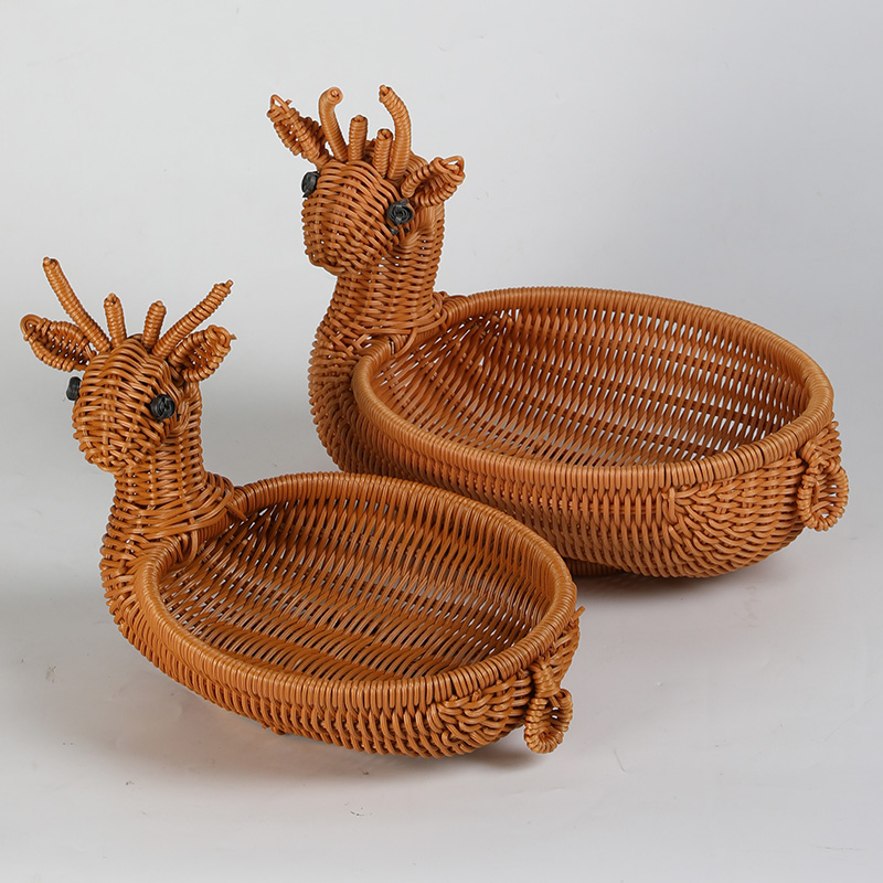 Kens动物果篮果盘仿藤编织篮子创意客厅茶几水果筐零食点心收纳筐