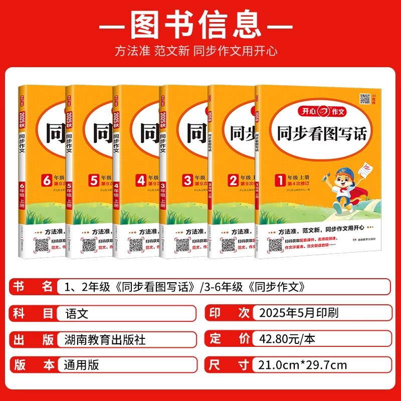 2025小学生开心同步作文三年级上册同步作文四年级五六年级下册配套人教版 二年级看图写话专项训练小学语文作文书三上四上34下 一