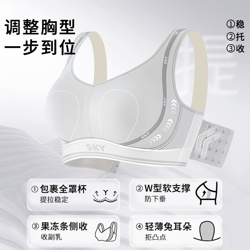 新光面上托侧推全罩杯大胸显小文胸 遐无痕内衣女薄款 小青提