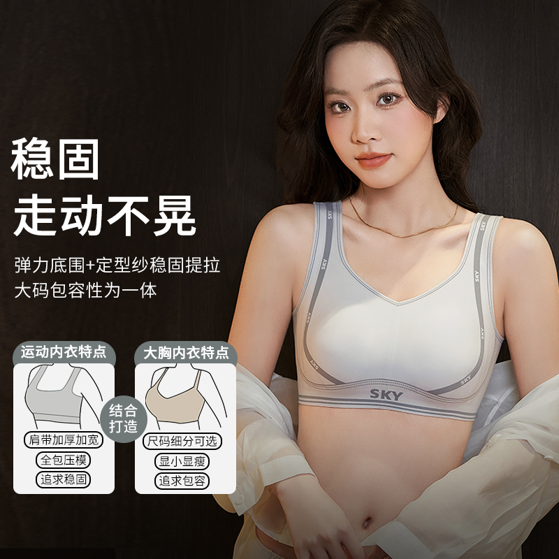 背心运动文胸罩 薄款 有棵树无尺码 内衣女胶原蛋白隐形无痕透气夏季