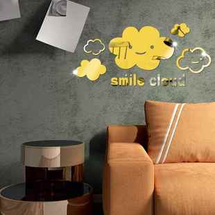 墙贴卧室客厅装 JM409 亚克力水晶镜面墙贴立体 微笑 饰贴定 云朵