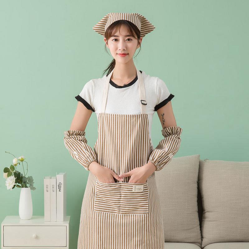 厂家直销棉麻围裙三件套家用厨房做饭防污咖啡奶茶店餐厅印制LOGO