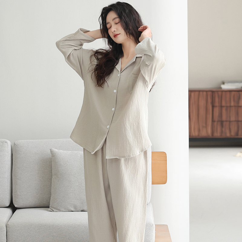 可外穿家居服 高级感开衫 婴儿棉双层纱布睡衣女春秋款 纯棉梭织长袖