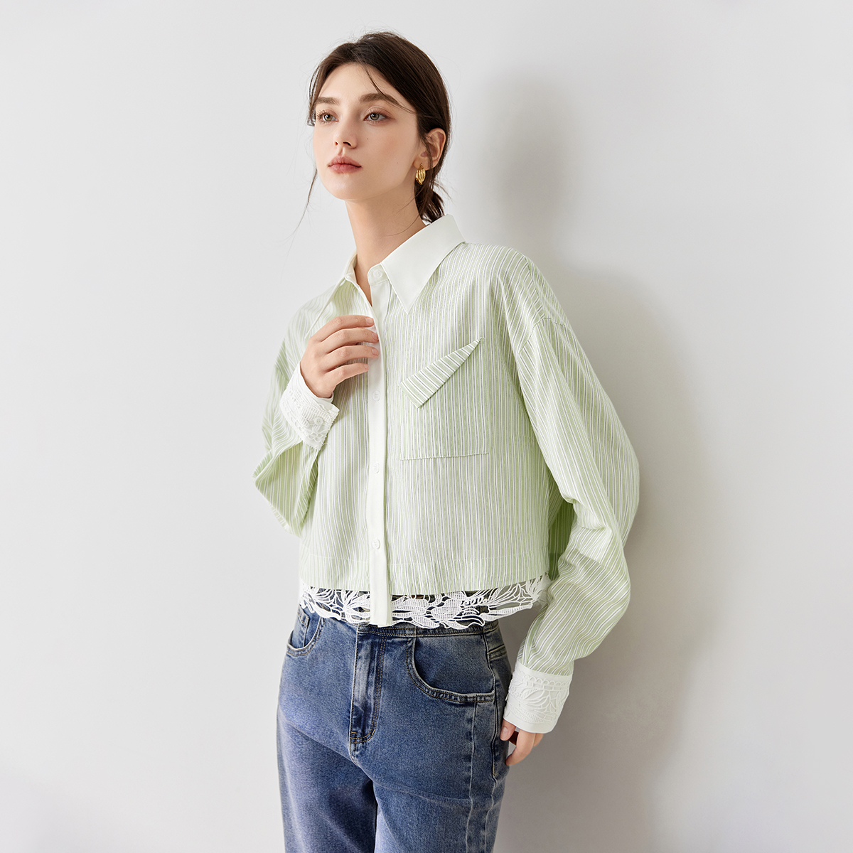 条纹宽松上衣内搭衬衣打底衫 热风女士休闲长袖 新款 2025年秋季 衬衫
