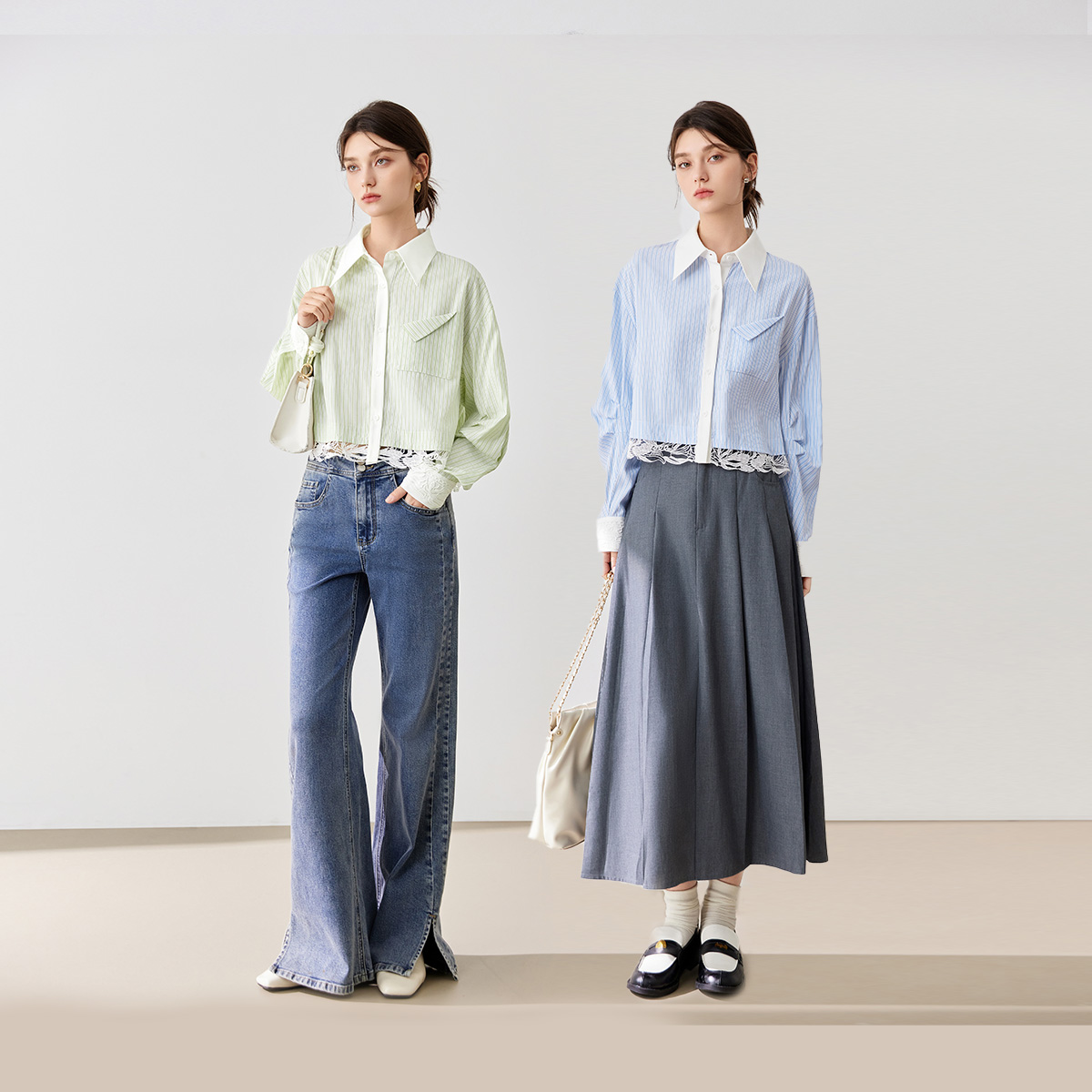 宽松两件套气质 女大翻领雪纺衬衣短背心俏皮可爱春季 森马长袖 衬衫