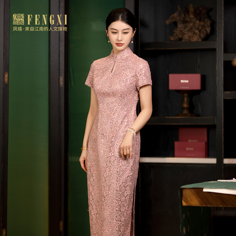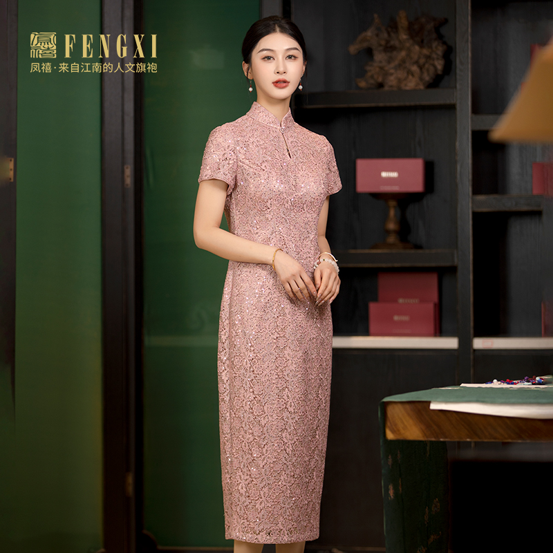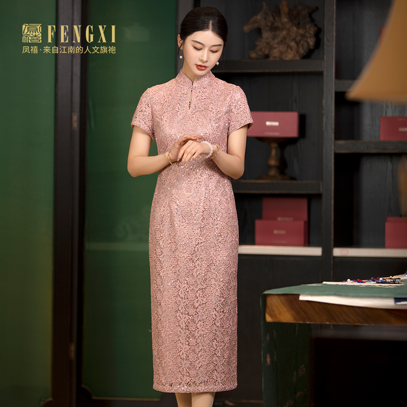 气质长款 旗袍2025年新款 中袖 少女中国风复古改良版 显瘦优雅 年轻款