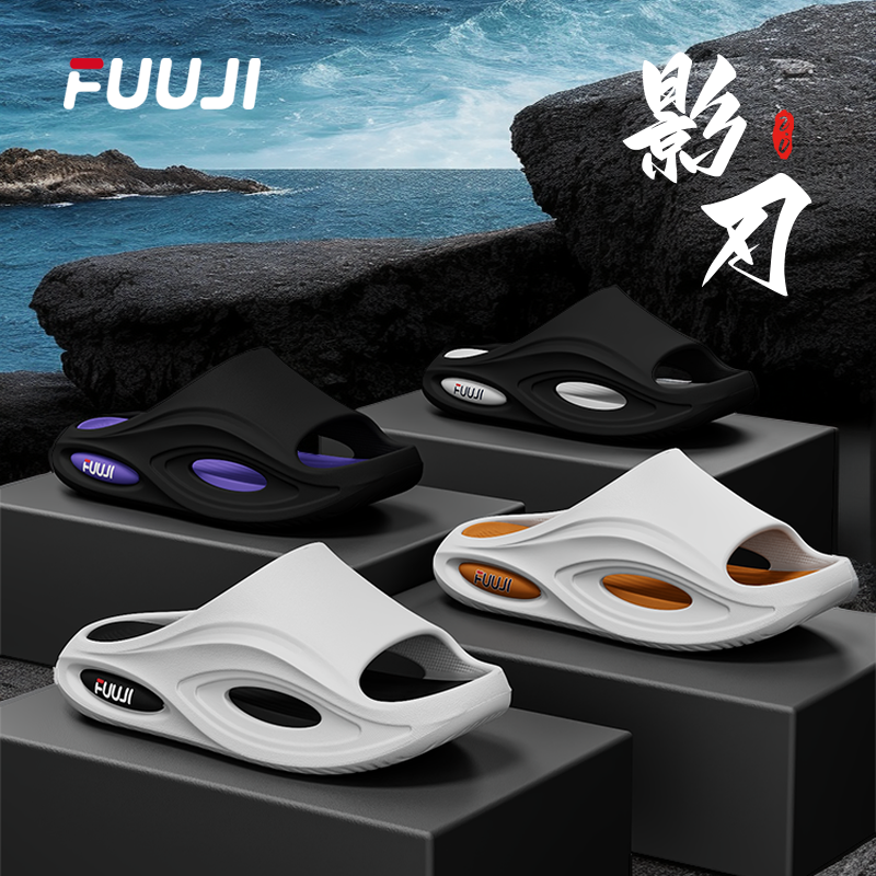 FUUJI家居拖鞋 居家室内户外运动防滑轻便踩屎感厚底外穿凉拖 男士