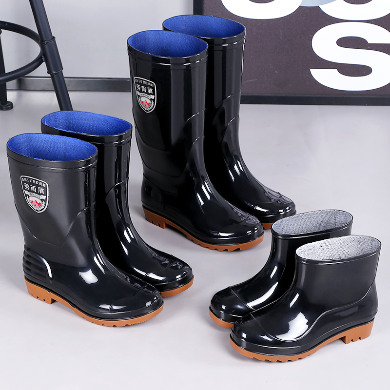 男加绒防滑工地胶鞋 中高筒雨鞋 男加棉长筒劳保雨靴钓鱼户外防水鞋
