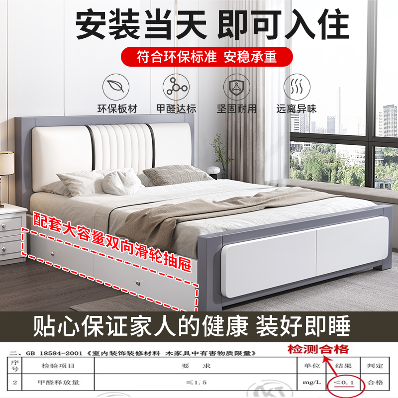 实木床现代简约1米8双人床经济型1.5m软包单人床架出租房用1米2床
