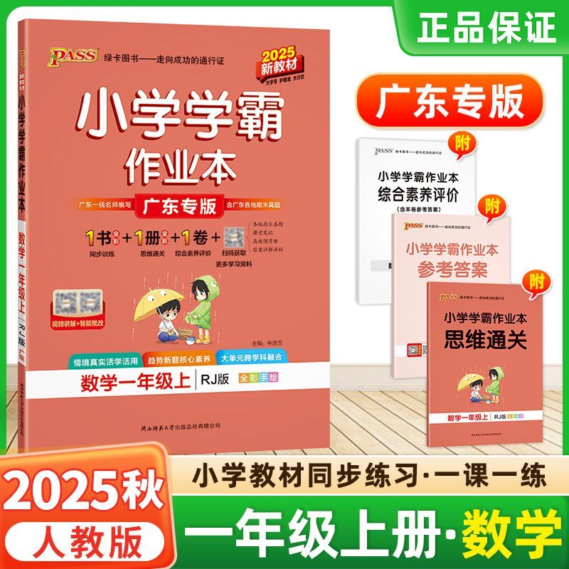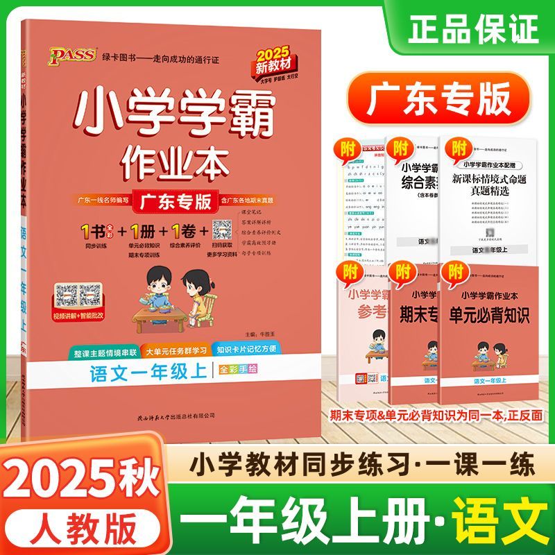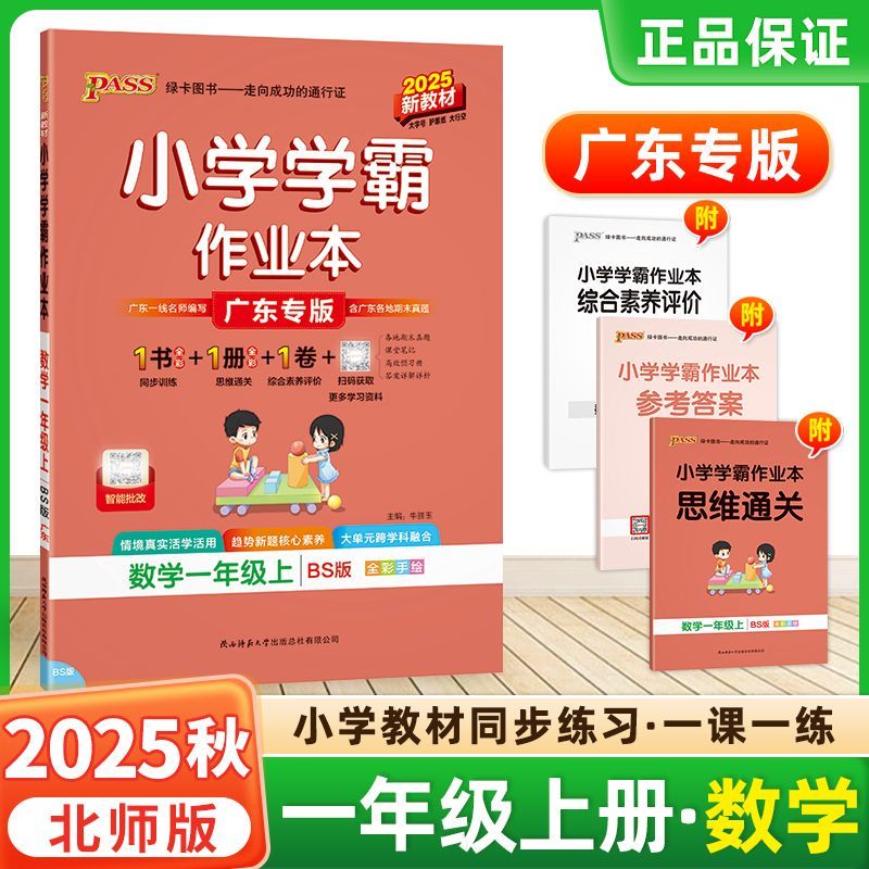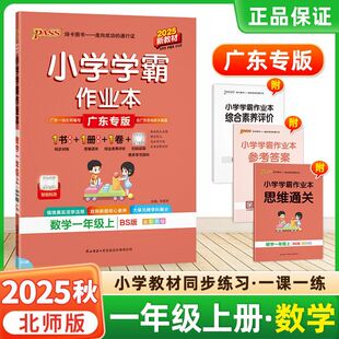 RJ北师版 PASS绿卡图书小学一年级课堂同步练习册 2025秋小学学霸作业本一年级上下册语文数学人教版 广东专版