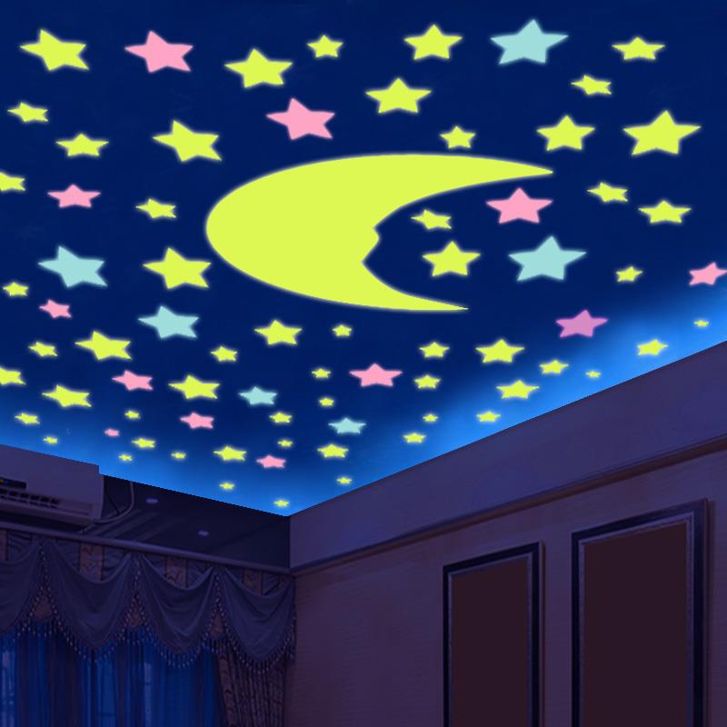 儿童宿舍夜光星星少女心房间荧光吊顶贴画天花板装 饰3D立体墙贴纸