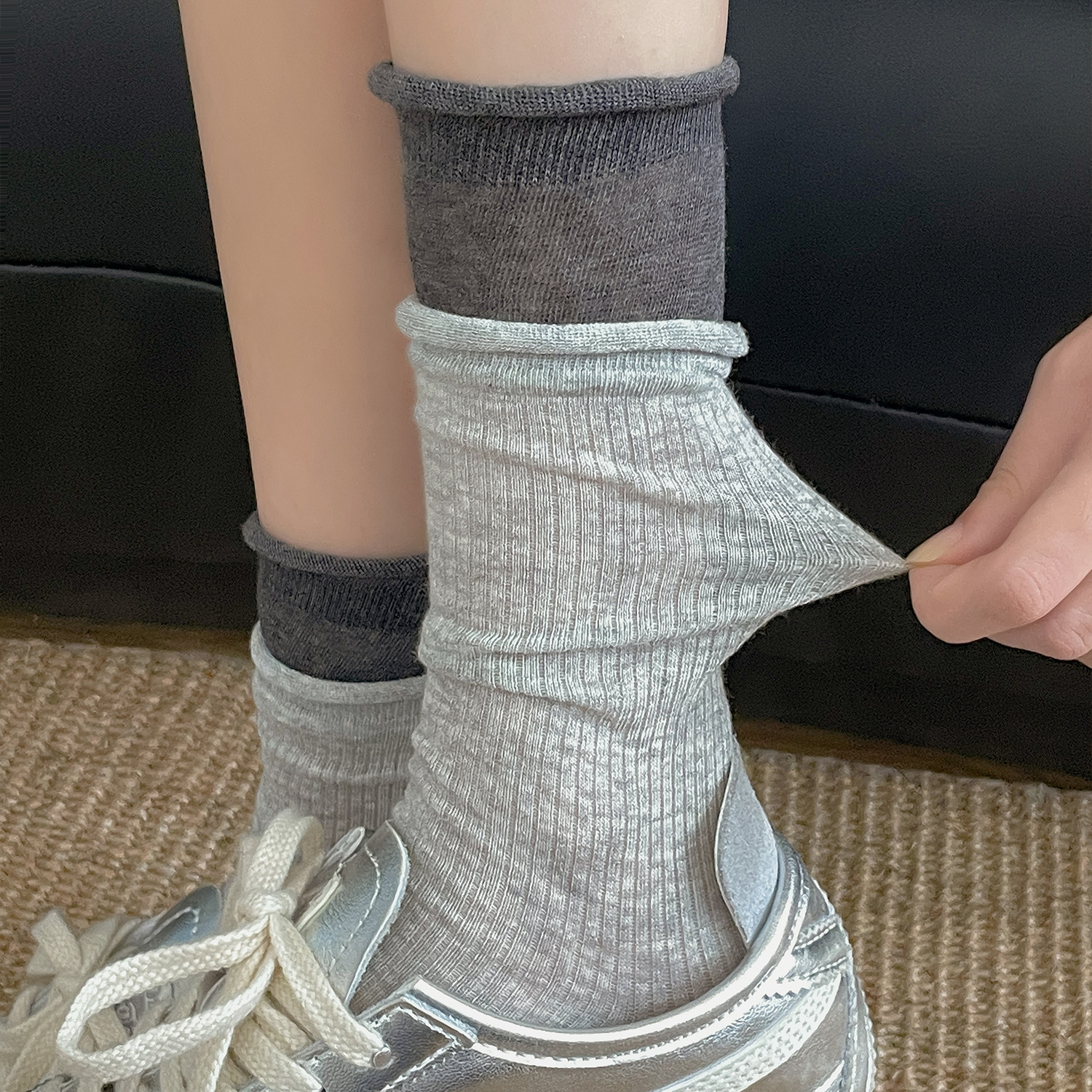 长筒袜 ins韩版 灰色袜子女款 春秋撞色中筒袜拼色堆堆袜搭配厚底鞋