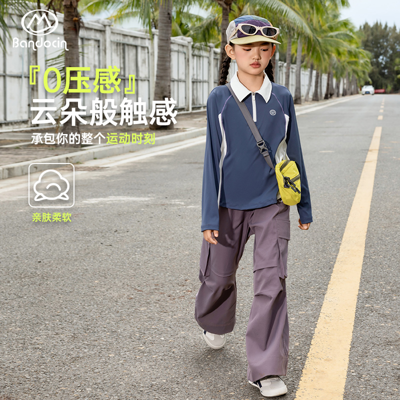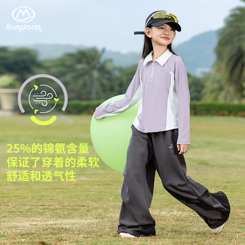 透气打底衫 儿童春秋款 2025新款 半度闲女童高弹力翻领T恤洋气秋装