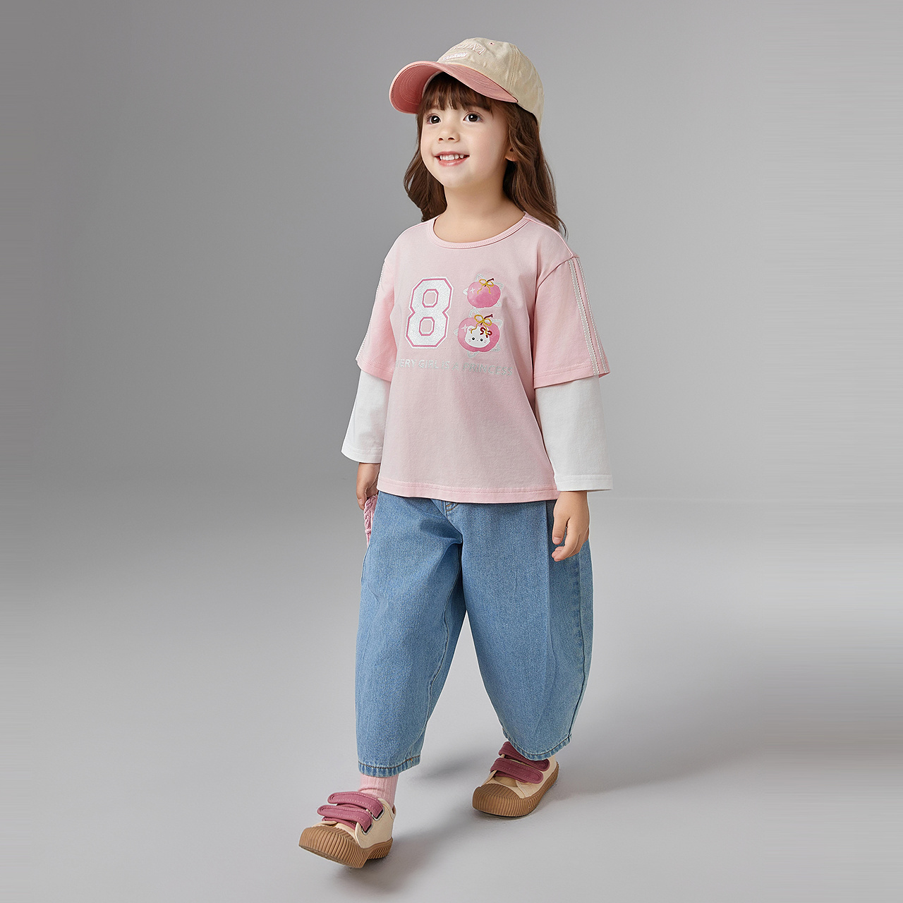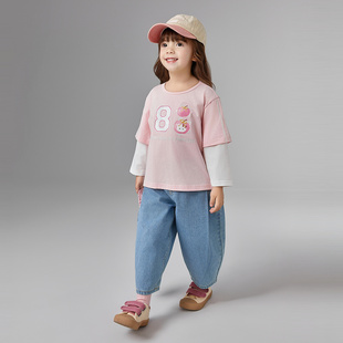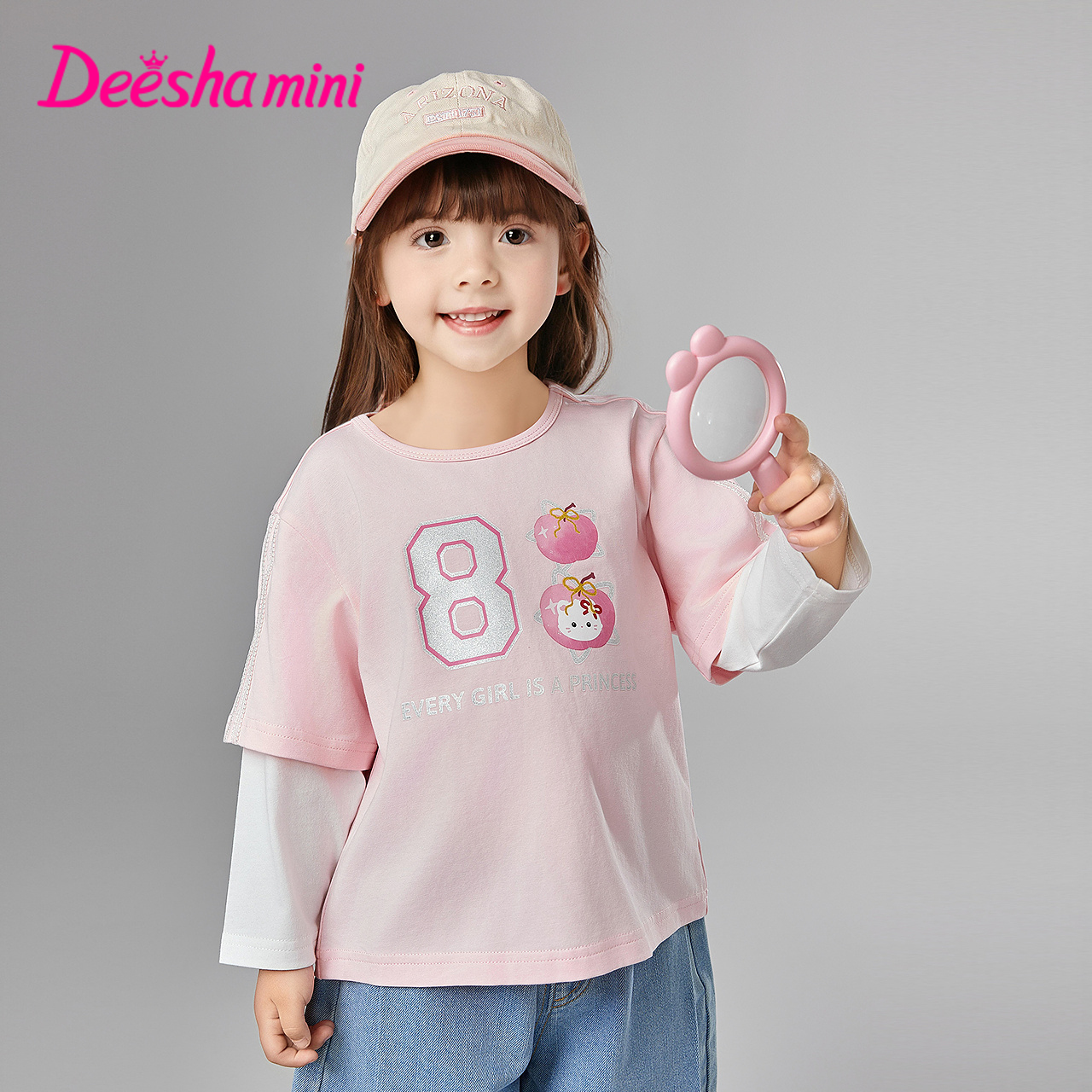 笛莎官方儿童女童T恤春季 女宝宝小童洋气假两件上衣春秋迪莎 新款
