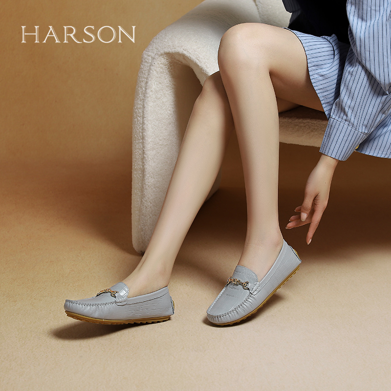 一脚蹬豆豆鞋 哈森休闲乐福鞋 平底单鞋 新款 HS257401 女2025春季