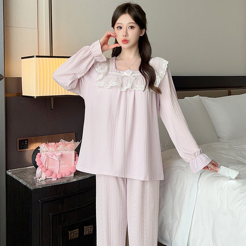 纯棉甜美宽松可外穿女士家居服套装 带胸垫睡衣女春秋冬季 2025新款