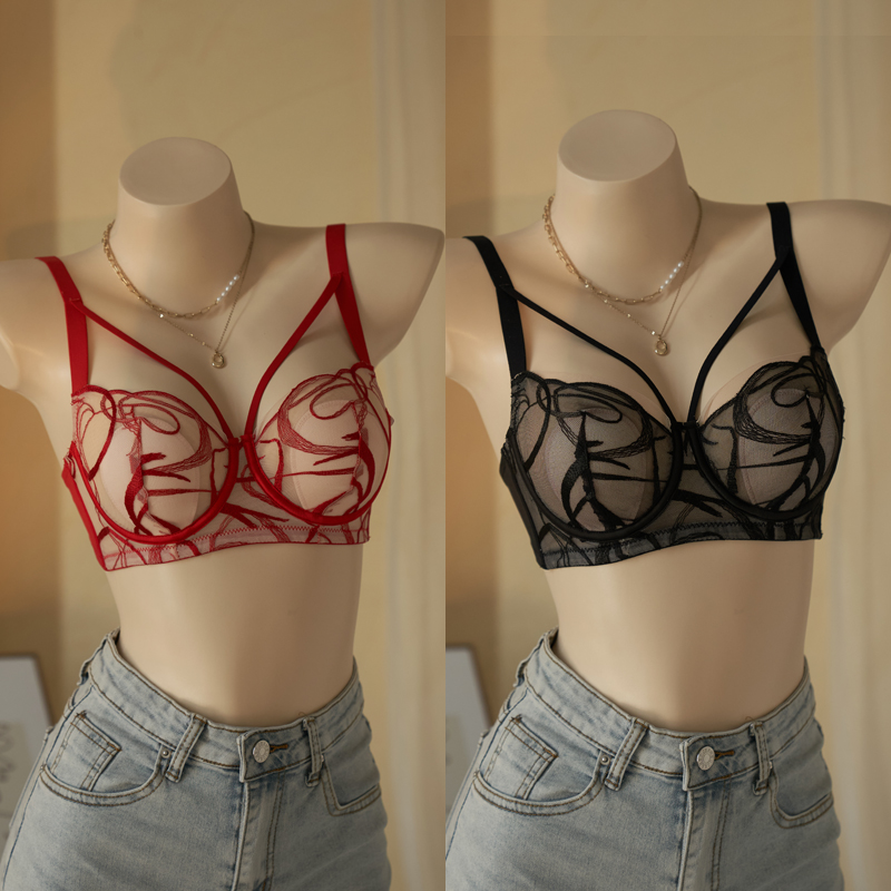 超薄内衣女法式 性感大胸显小显瘦胸罩软钢圈防下垂收副乳文胸套装