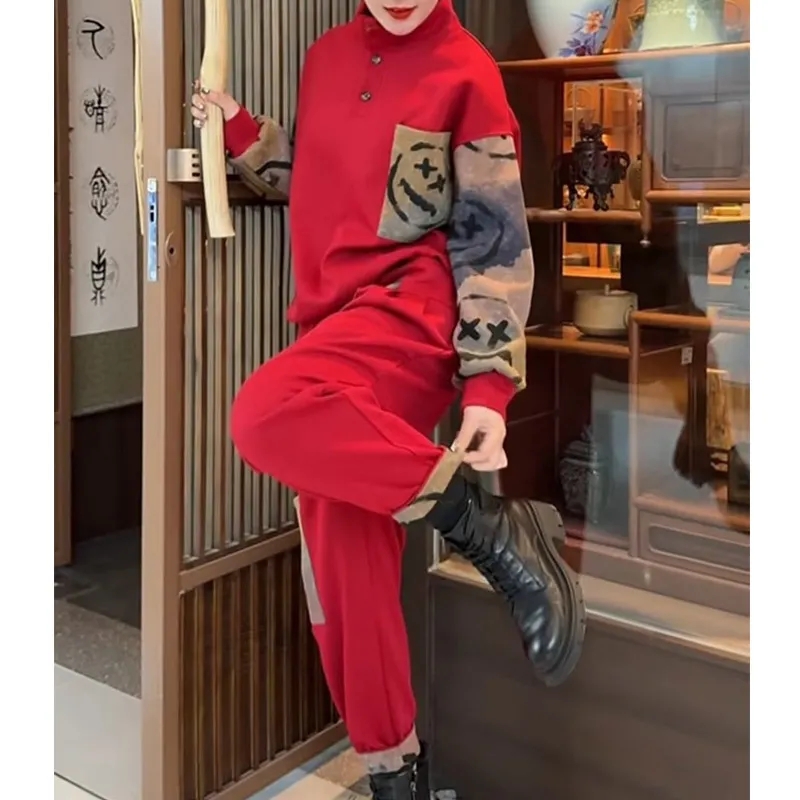 印花大码 上衣哈伦裤 拼色套装 显瘦长袖 休闲两件套 2025早春新款 时尚