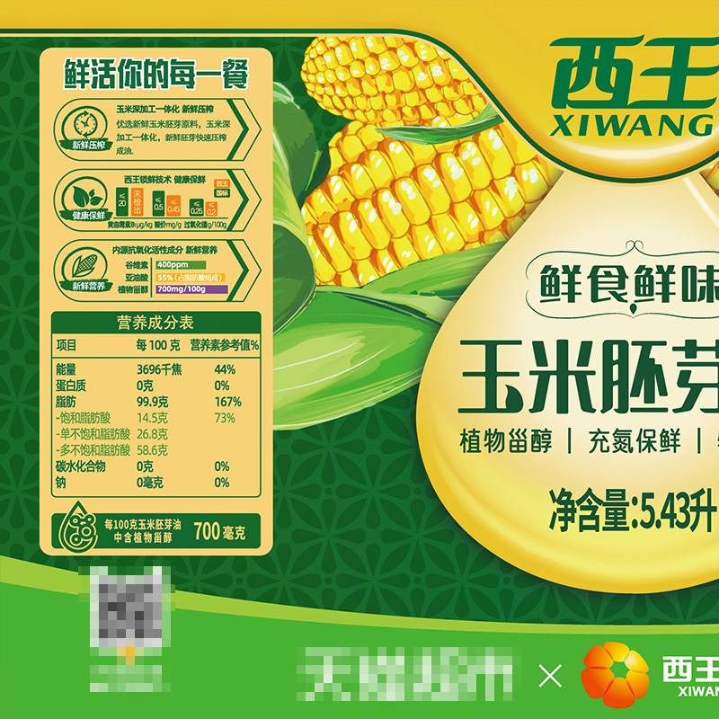 西王玉米胚芽油5.43L 4桶非转基因物理压榨食用油