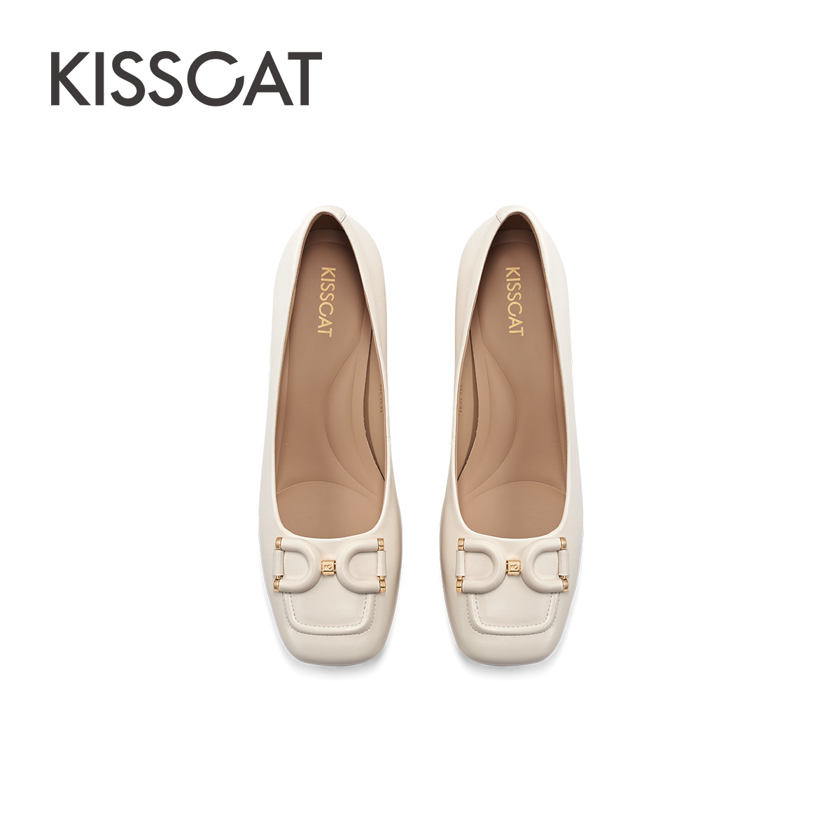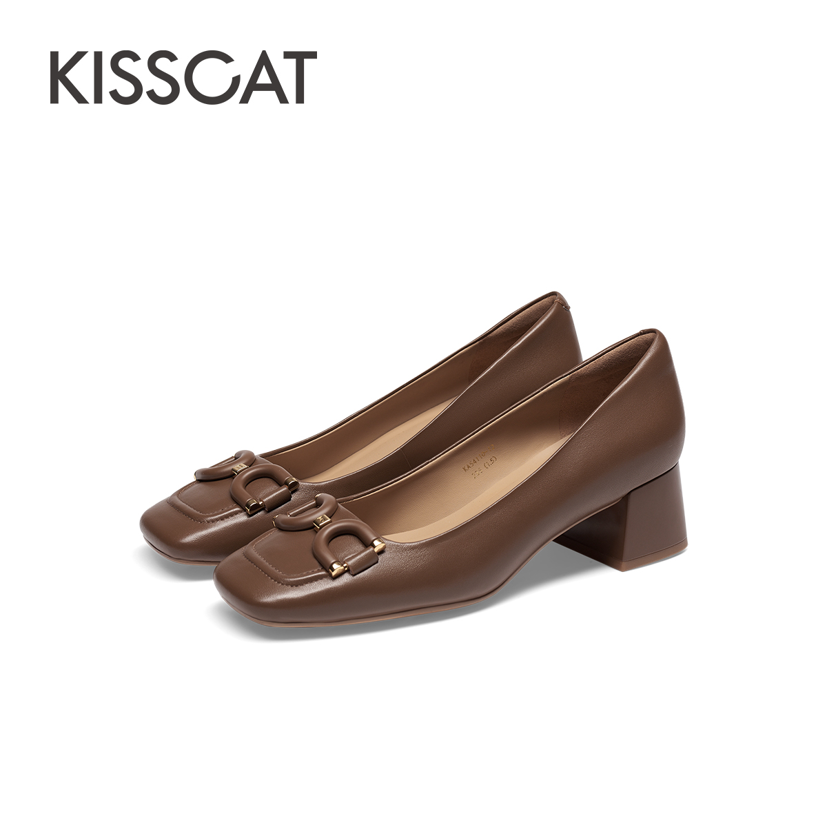 温柔通勤粗跟单鞋 中跟鞋 女 气质法式 KISSCAT接吻猫新款
