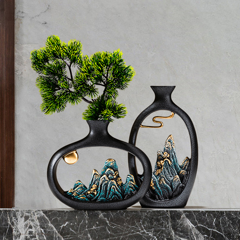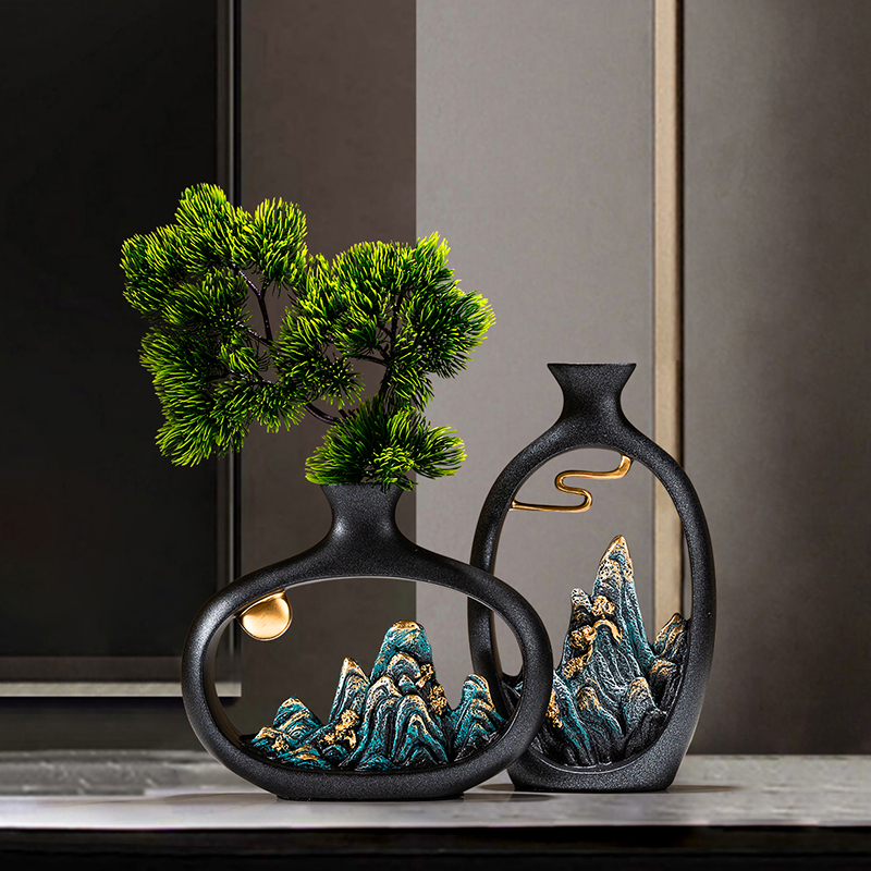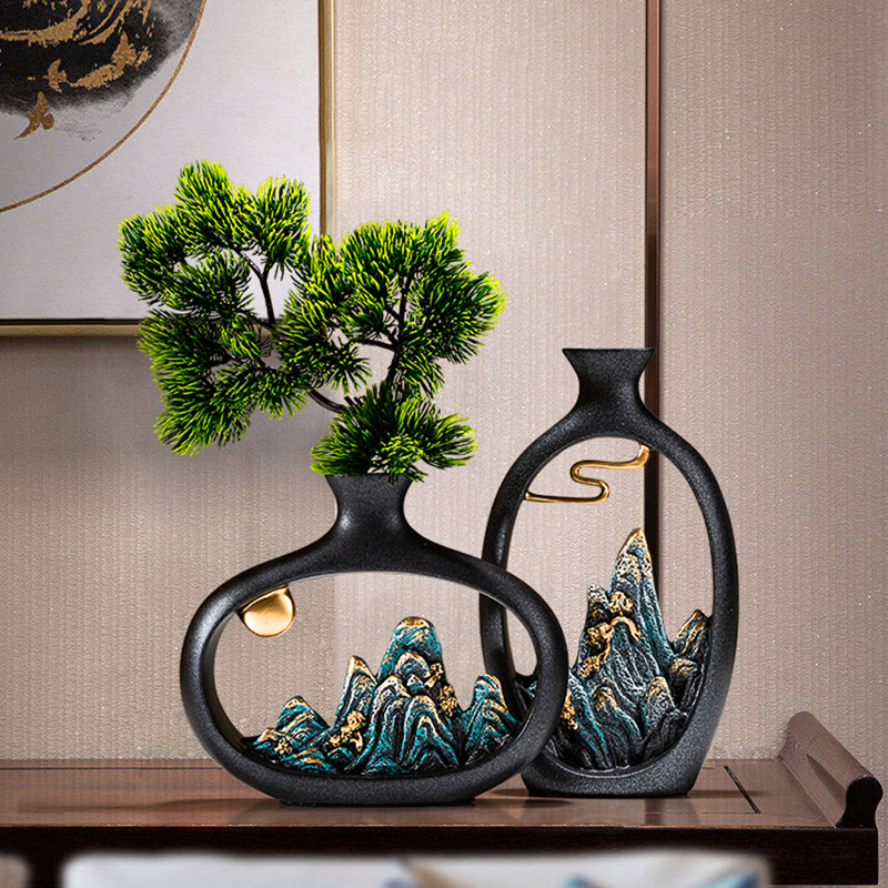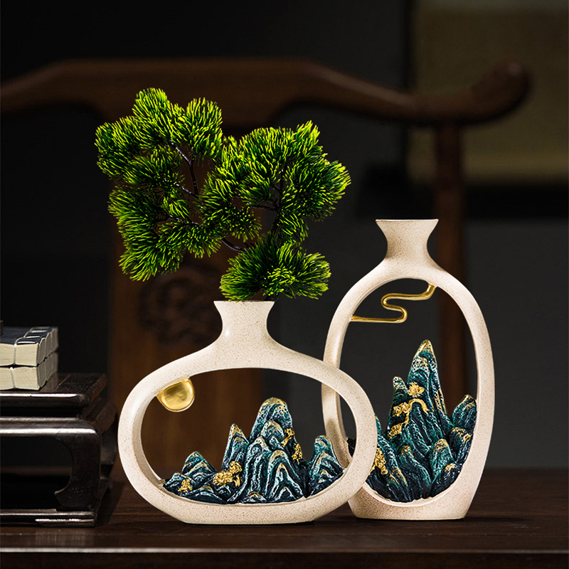 新中式 饰品 迎客松花瓶摆件高端客厅电视柜博古架办公室茶室桌面装