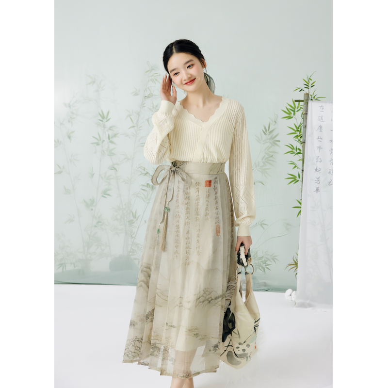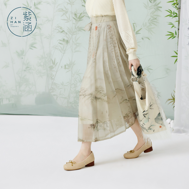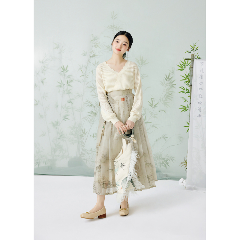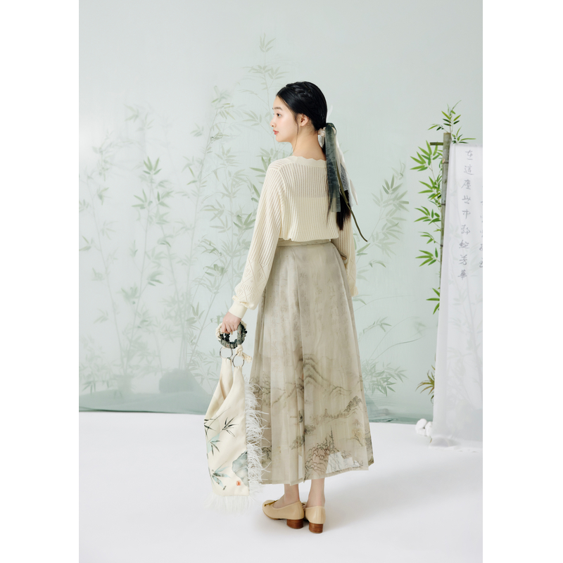 COCOBELLA新中式 扎染丝绒半身裙秋冬国风拼接开叉半裙HS3073