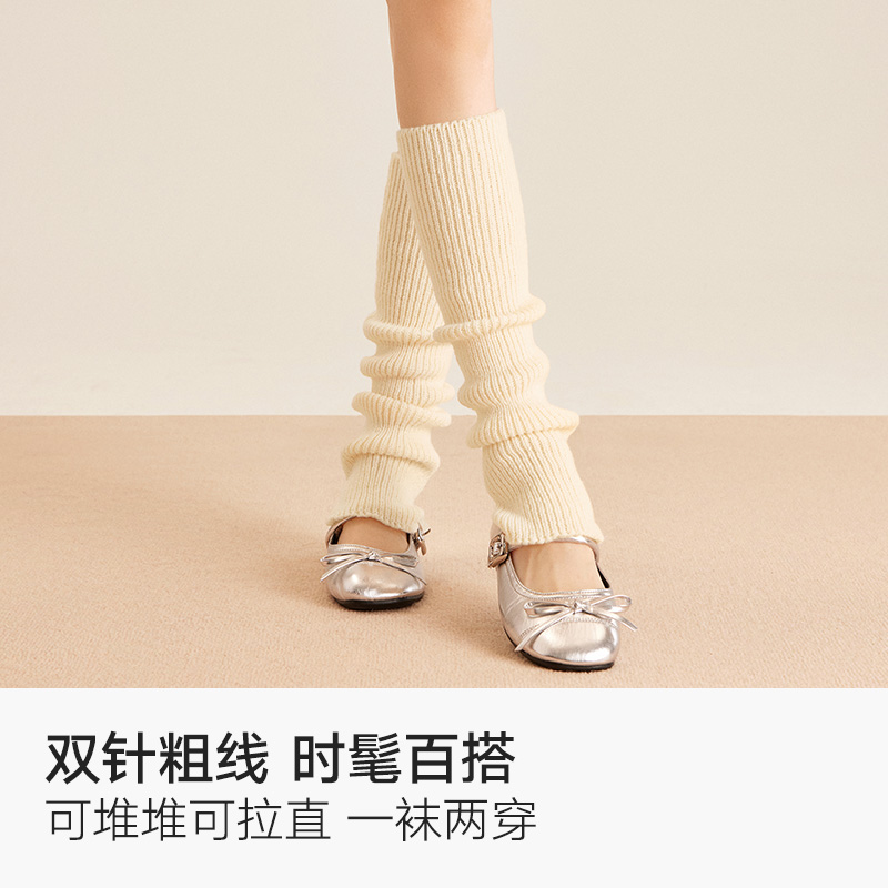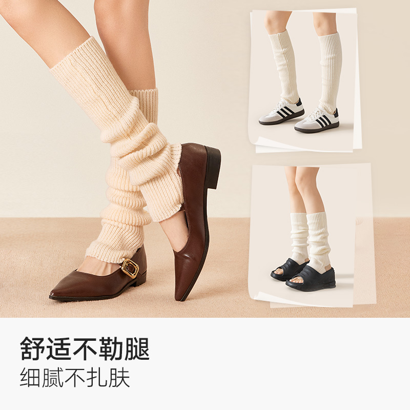 长筒袜 小皮鞋 袜套女秋冬季 针织堆堆袜腿套y2k白色小腿袜配瑜伽裤