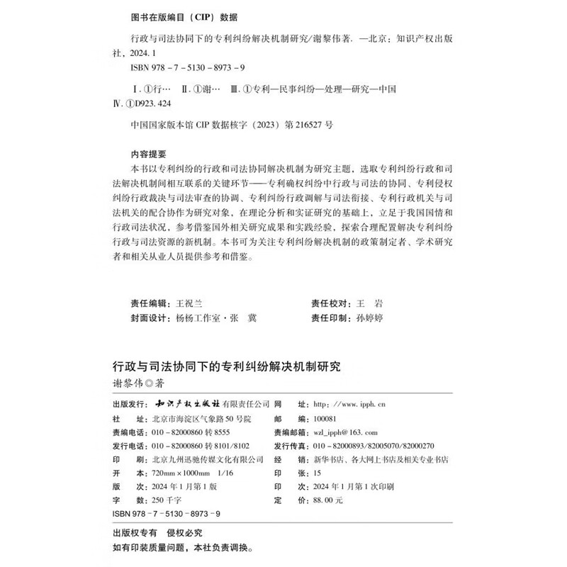 2024新书 知识产权出版 行政与司法协同下 谢黎伟 社9787513089739 专利纠纷解决机制研究 正版