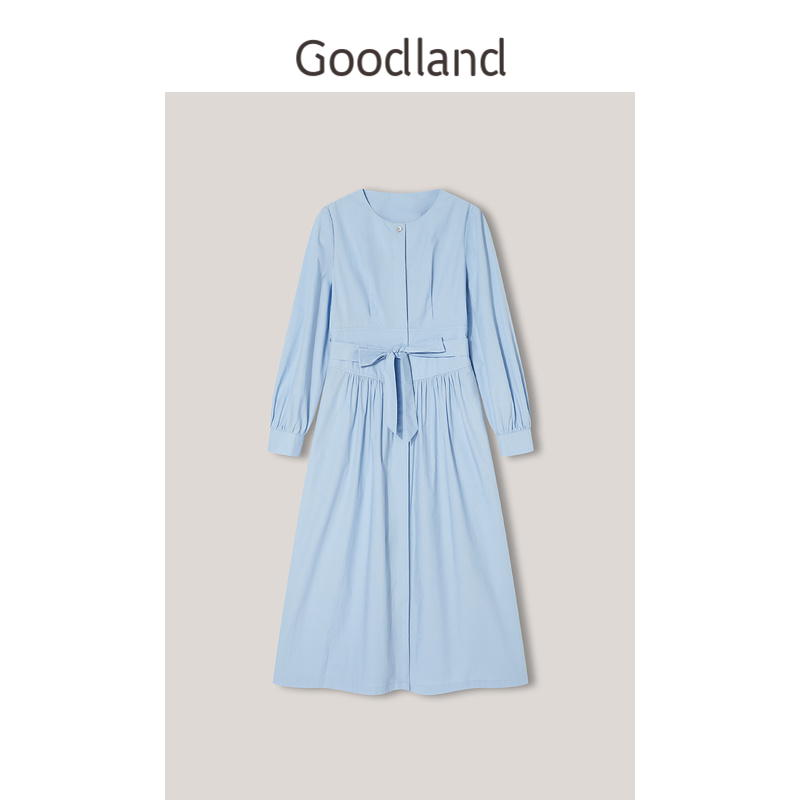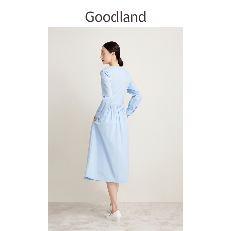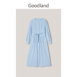 气质长袖 修身 收腰显瘦高级感淡人连衣裙中长 朗姿2025秋新款 LANCY