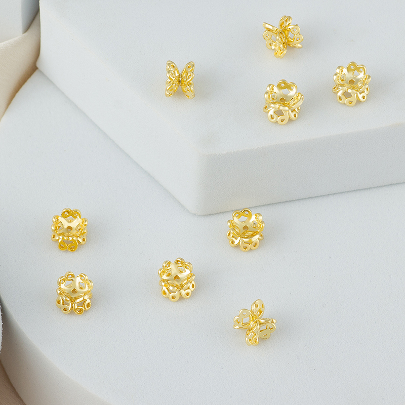 镀18k金花托隔片双面镂空珠托配件手工串珠diy手链手串隔珠垫片