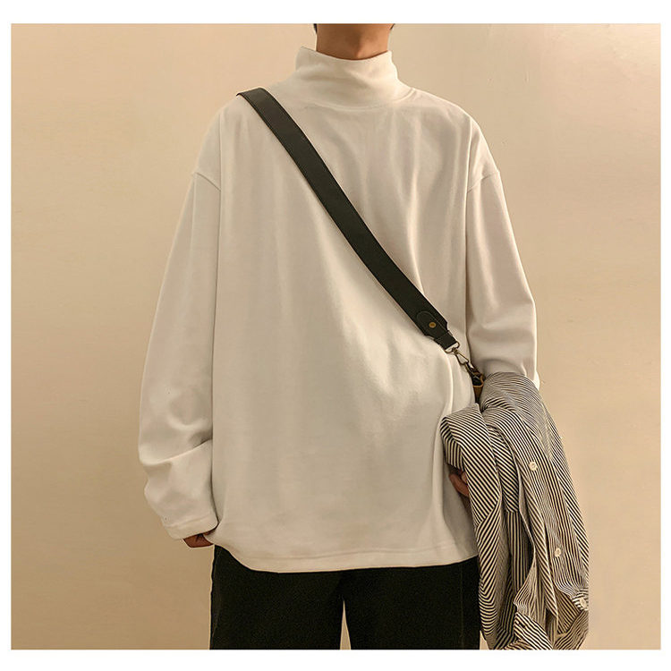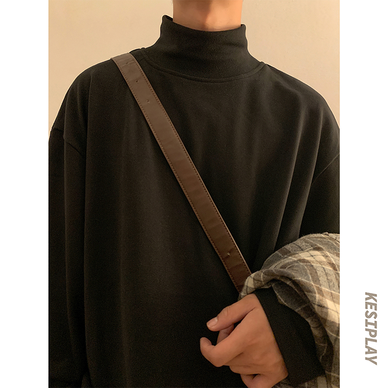 重磅半高领内搭打底衫 T恤加绒加厚上衣 男女秋冬潮牌宽松休闲长袖