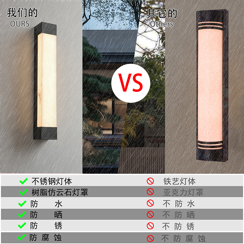 现代户外庭院灯入户门口门前阳台阳光房露台长条不锈钢防水壁灯