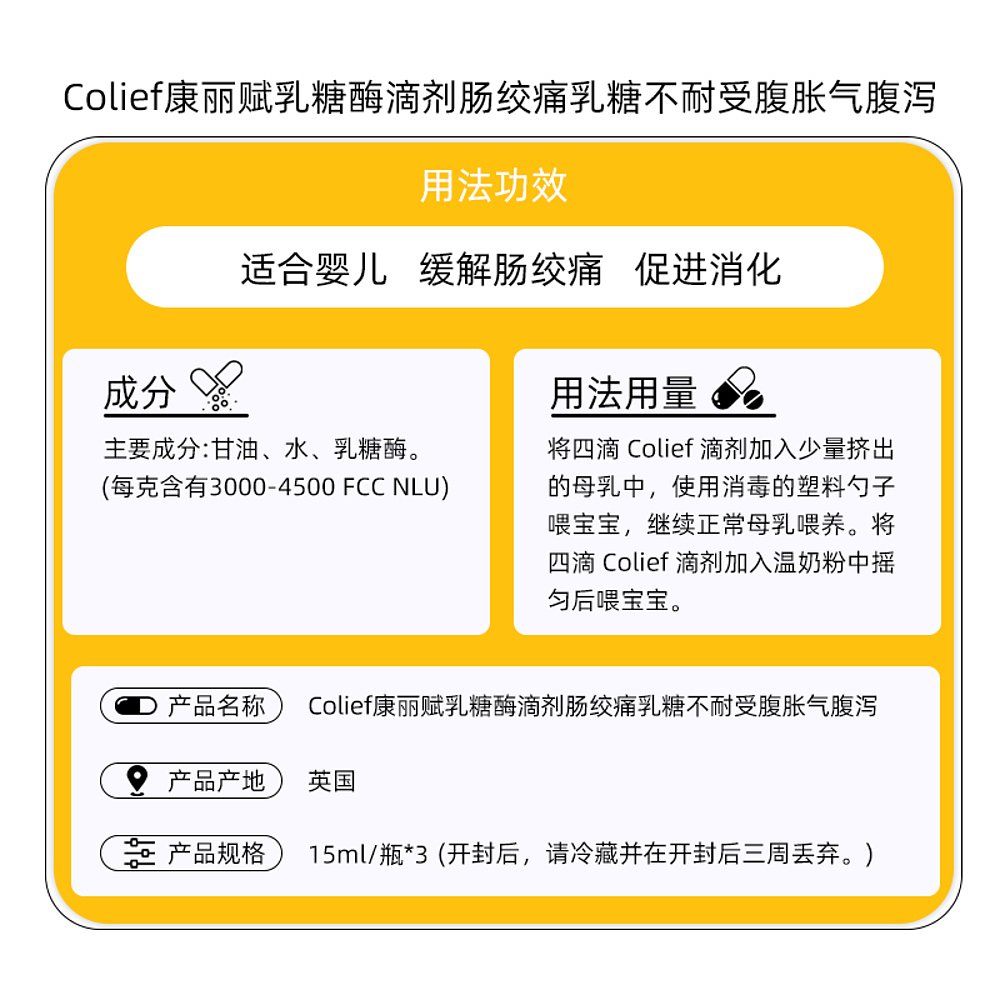 欧洲直邮英国colief康丽赋婴儿乳糖不耐受酶滴剂吐奶宝宝促消化