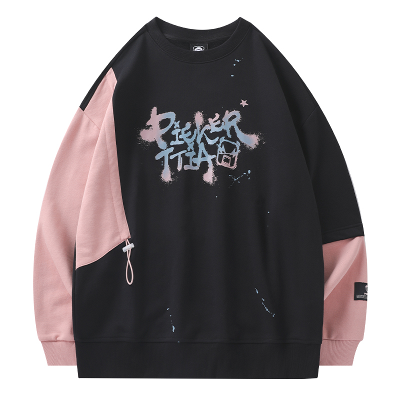 LAMLICKA撞色拼接涂鸦印花卫衣女潮春秋潮牌oversize套头情侣上衣