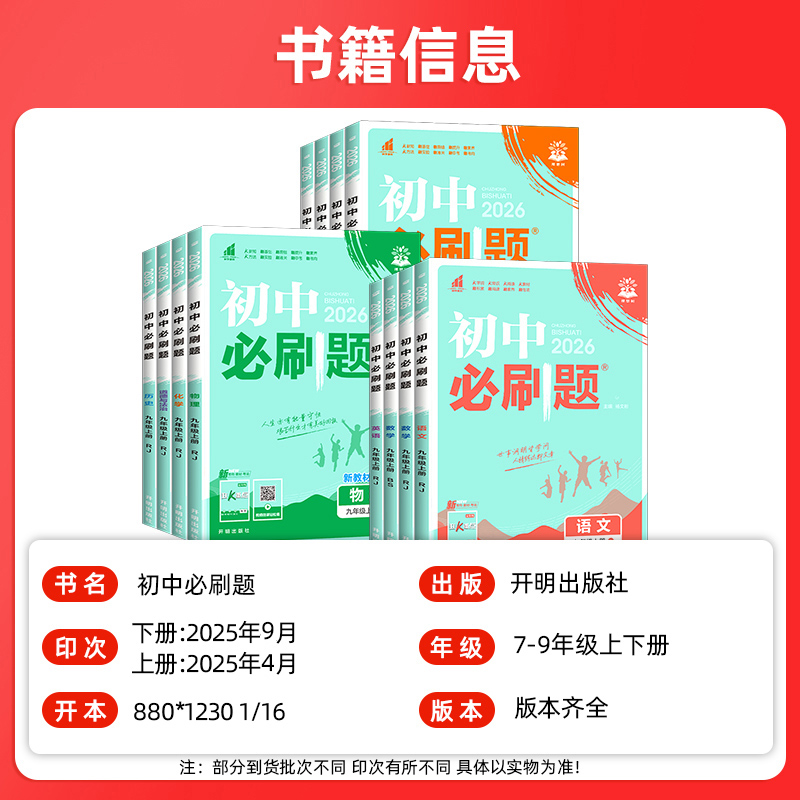 北师大沪粤版 初中必刷题七八九年级上下册数学语文英语物理化学政治历史生物地理初一初二初三中考人教版 2026版 练习册 江西专版
