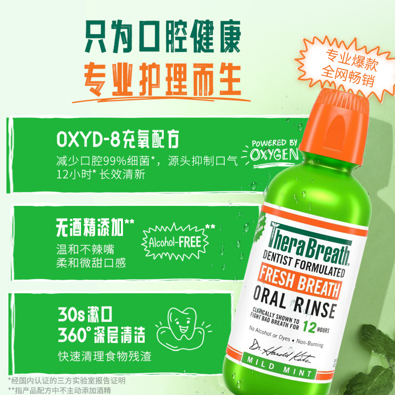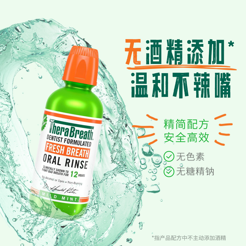 TheraBreath凯斯博士漱口水便携口臭清新气持久涑 折扣装