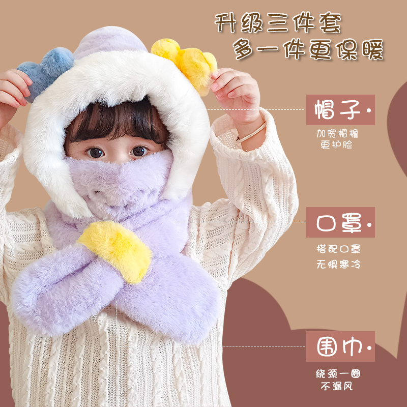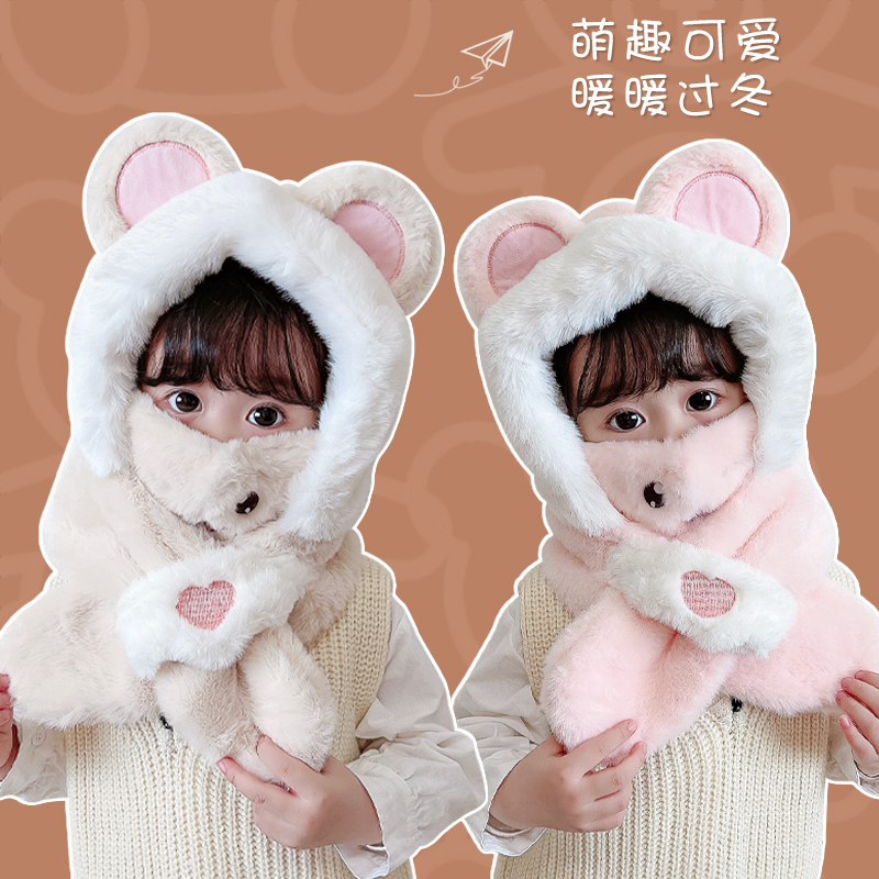 可爱儿童帽子围脖一体女冬加厚男女童宝宝上学防寒保暖围巾雷锋帽