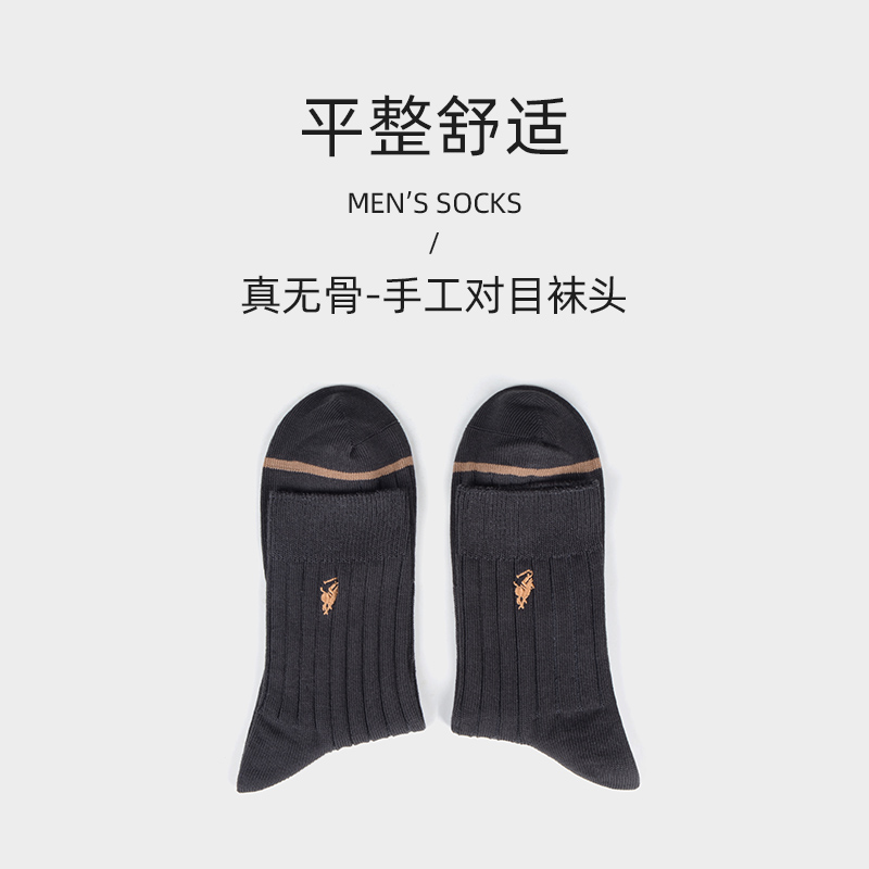 浪莎袜子男纯棉抗菌防臭中筒袜春秋厚款 男袜秋冬全棉黑色商务长袜