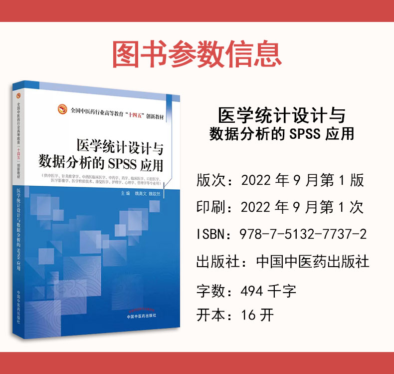 SPSS应用 中国中医药出版 全国中医药行业高等教育十四五创新教材 魏歆然主编 社9787513277372 魏高文 医学统计设计与数据分析