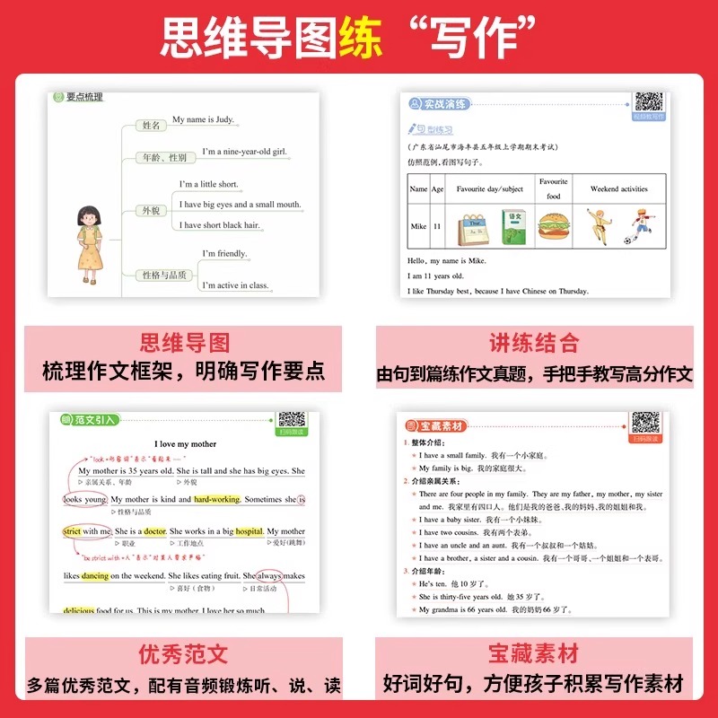 2026版 英语词汇一二三四五六年级适用英语入门与提高写作技巧方法范文素材高分作文模板满分作文课外全国通用 一本小学生英语作文