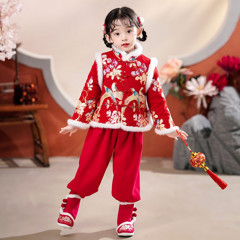 套装 唐装 宵节中国风古风国学服2023年新款 小女孩元 女童表演服春季